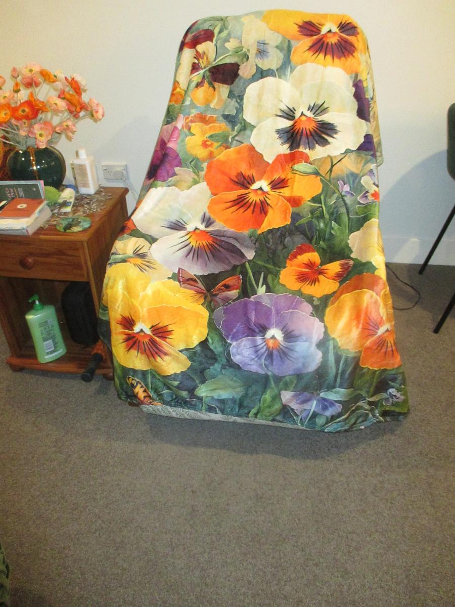 130cm x 150cmPansies, looks so real,new, never used, excellent condition.