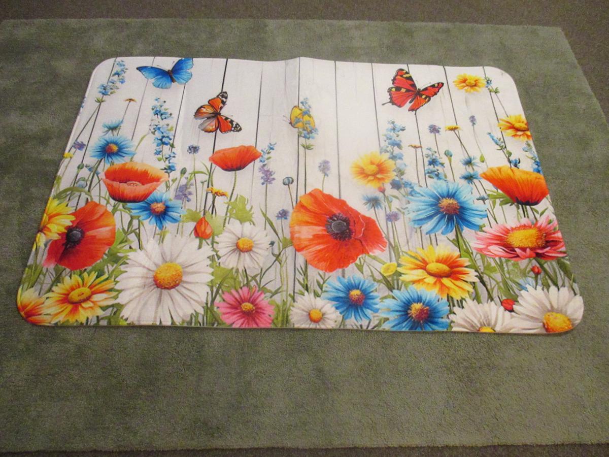 very pretty. 115cm x 77cm,new , never used, excellent condition.