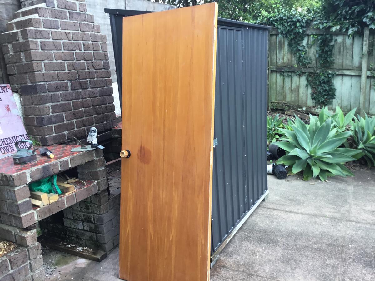 Maybe looking for an interior door, this is rimu veneer with door handle it is 1980 high .760 wide 38 mm thick in quite nice condition of course paintable.