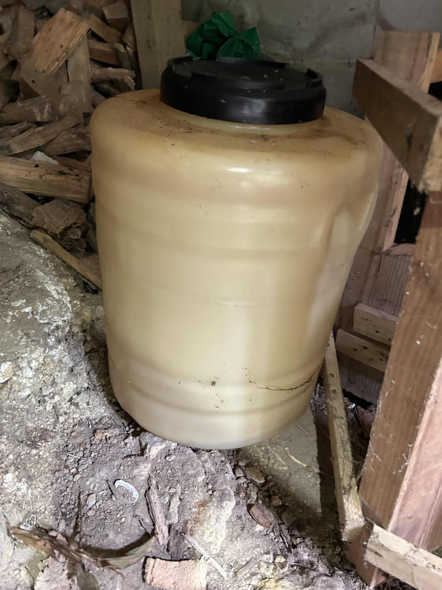 Various other equipment - 2 sugar-syrup feeders, 1 hive lid, 2 plastic casks, several supers and frames