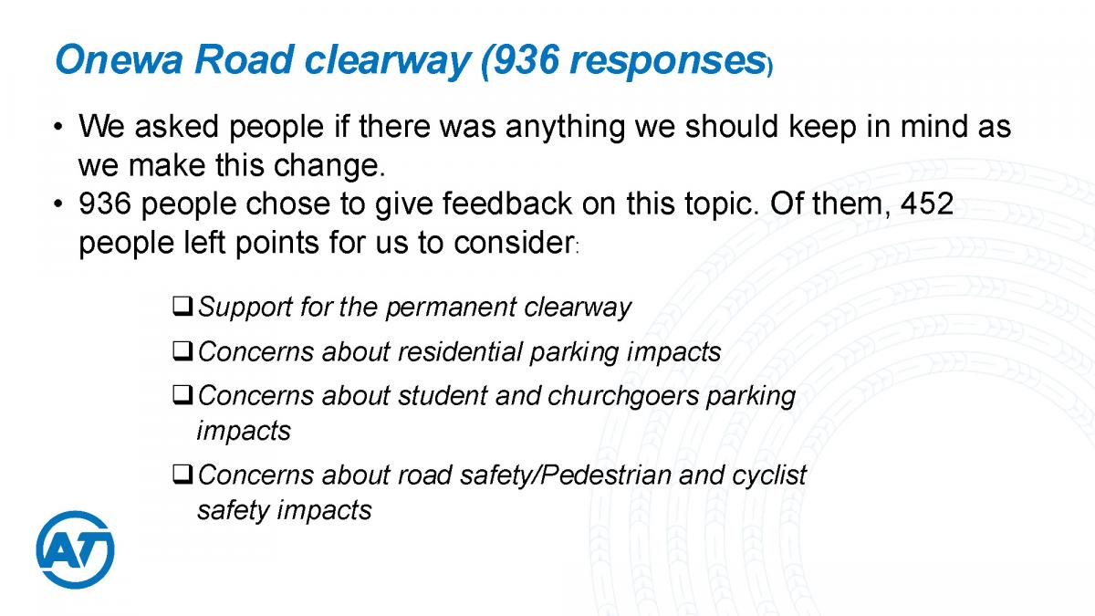 The results of the Onewa Road Corridor Improvements consultation, including the proposed clearways, are now available.