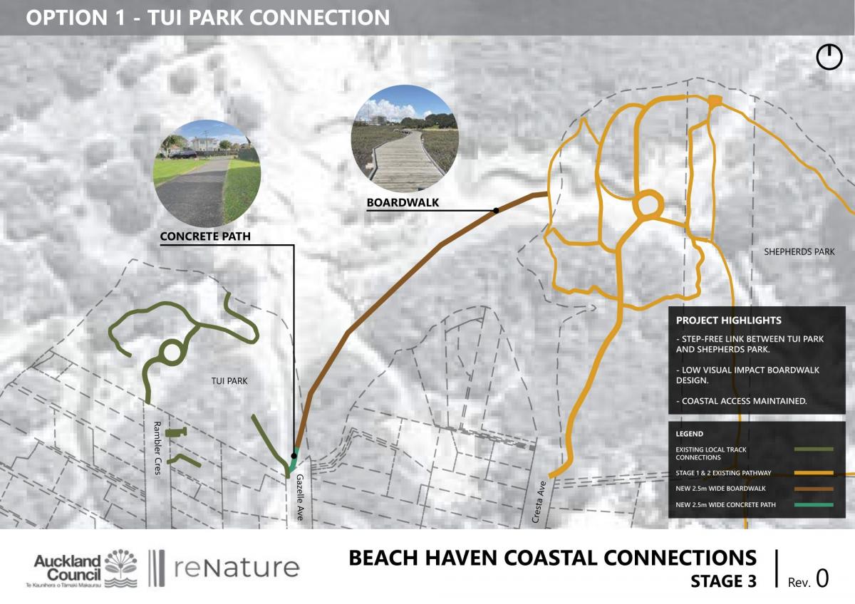 ➤ Option 1: a path to connect Tui Park … View moreConsultation is now open on the next stage of the Beach Haven Coastal Walkway!