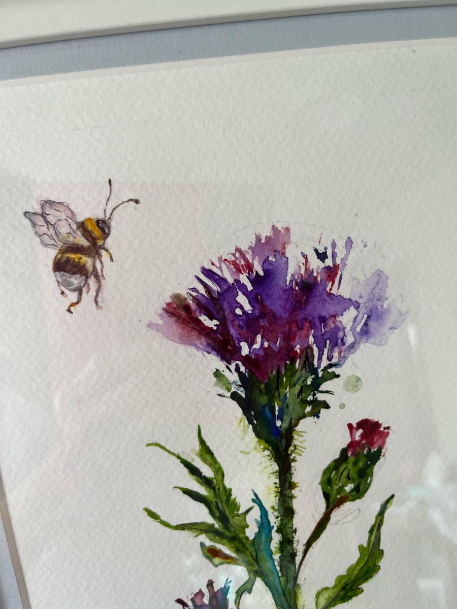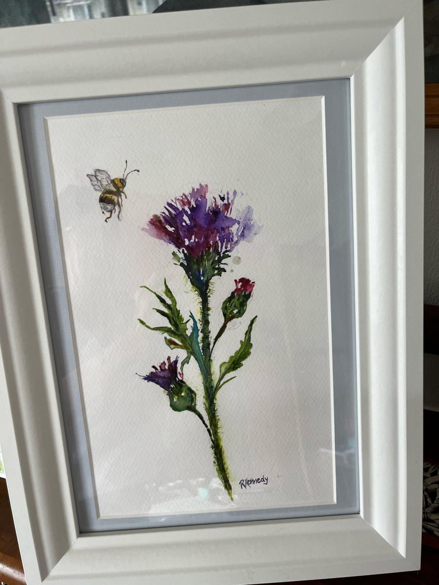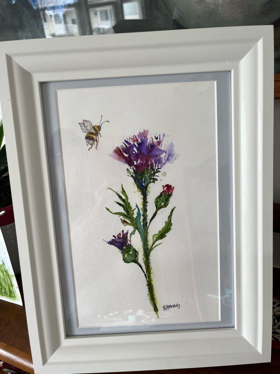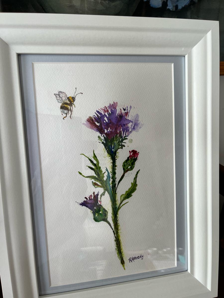 The soft hues of a classic white frame and powder blue matt provide the perfect setting for the more dramatic colors of nature. Measures 28cm x 37cm. You are welcome to view/pick up from my studio in Forrest Hill.