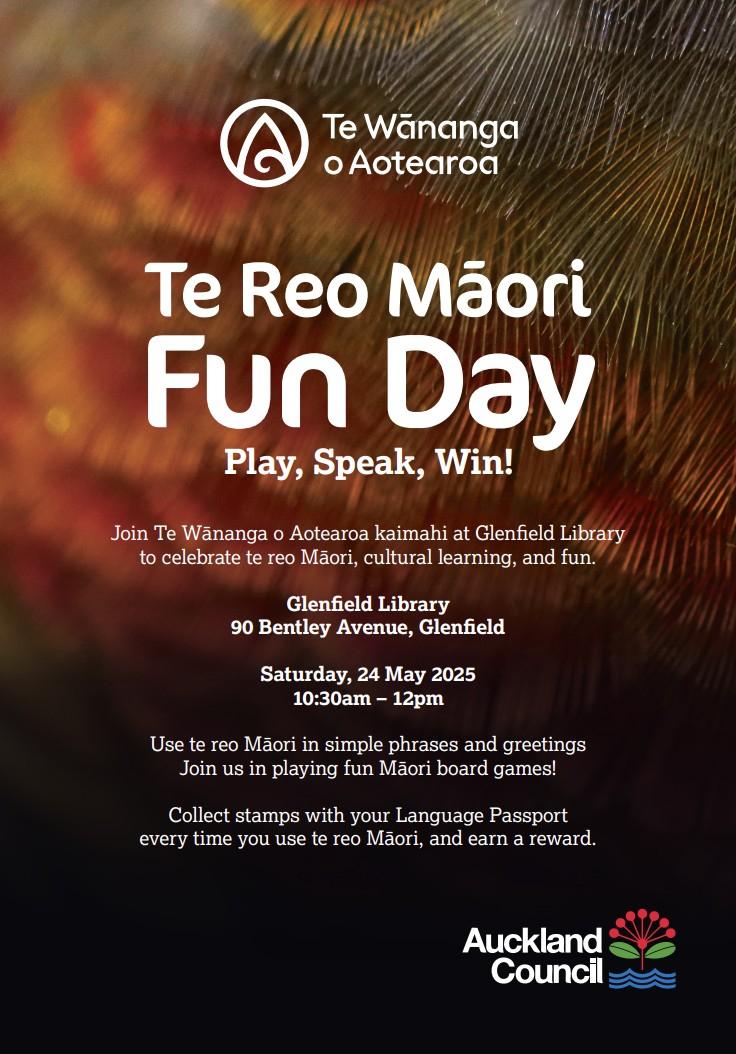Collect stamps with your Language Passport every time you use te reo Māori, and … View moreJoin Te Wānanga o Aotearoa kaimahi at Glenfield Library to celebrate te reo Māori, cultural learning, and fun.