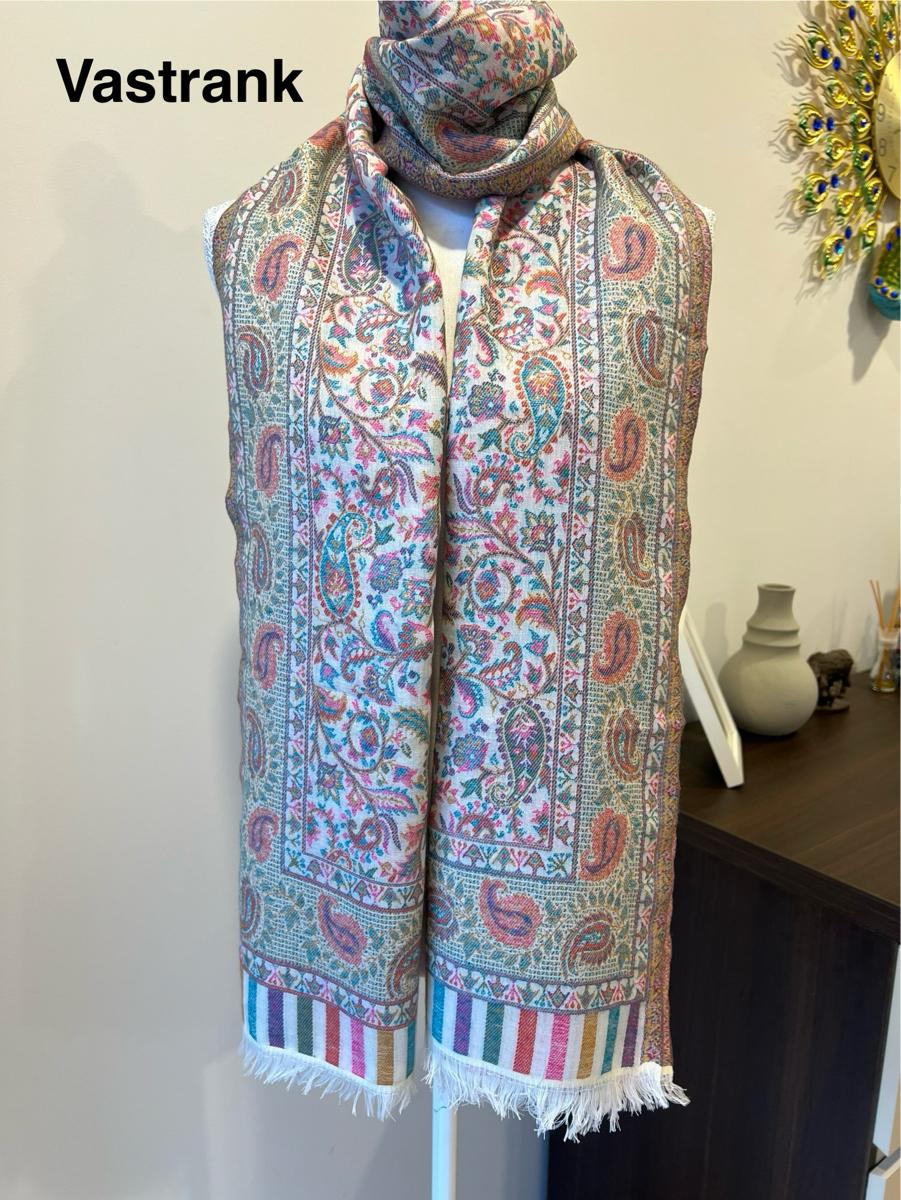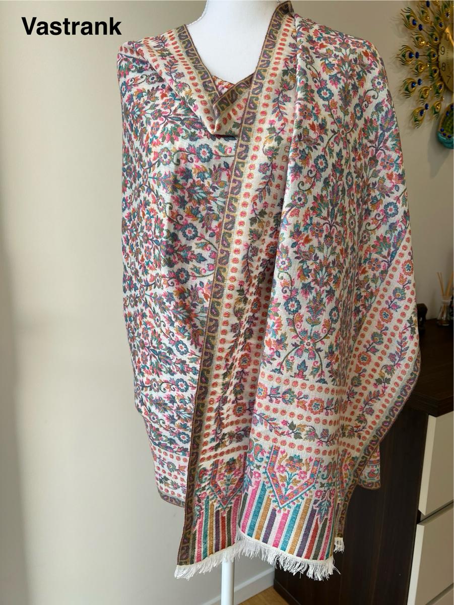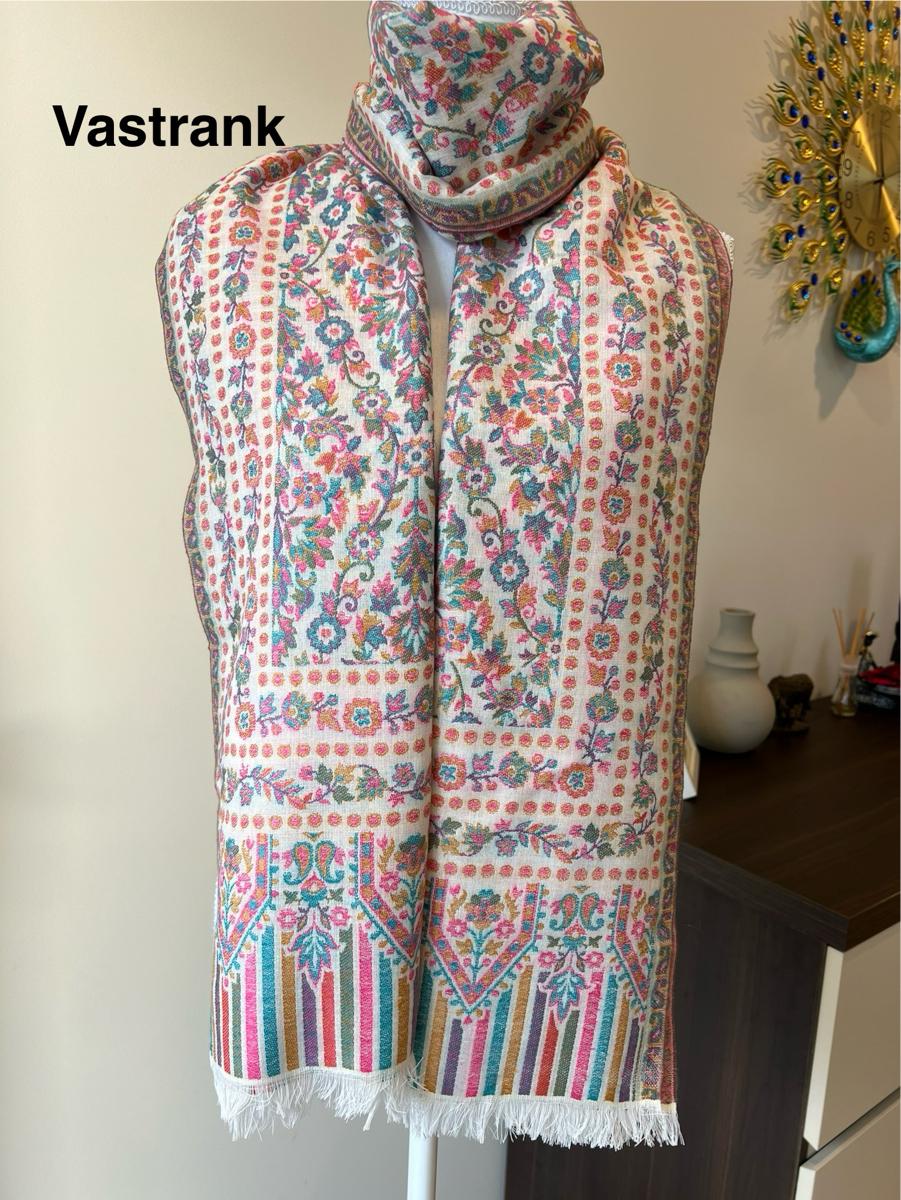 Perfect for winters to keep … View moreVastrank presents absolutely elegant & Authentic Kashmiri Jamawar Kani weave stole. This stole offers a true combination of fine artistry and multicoloured floral & paisley and geometric patterns maintaining the warmth, style & elegance. 🎉