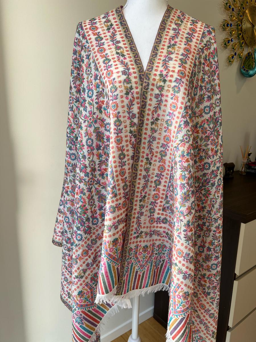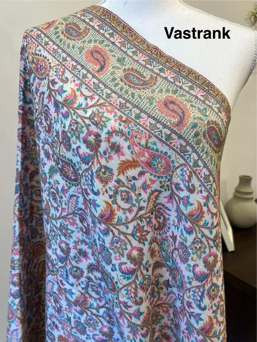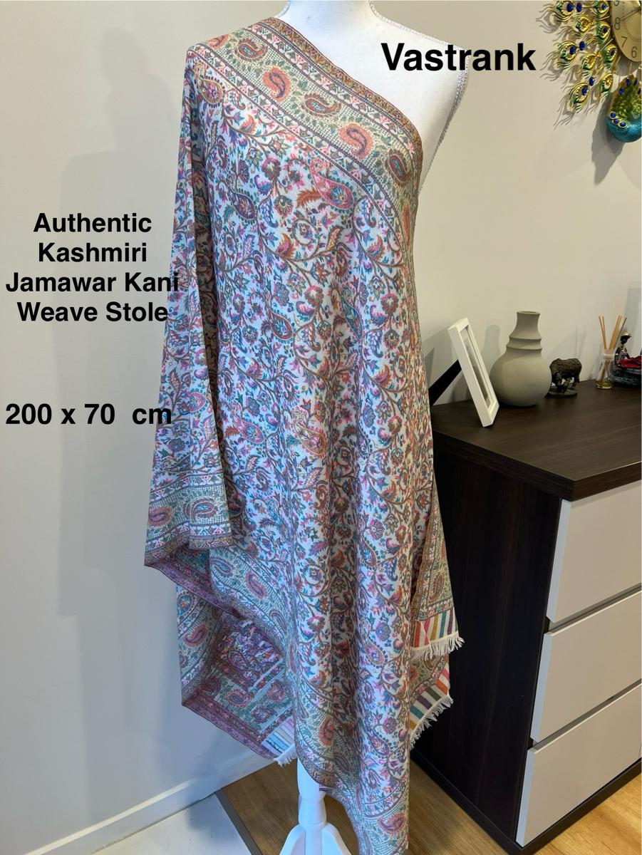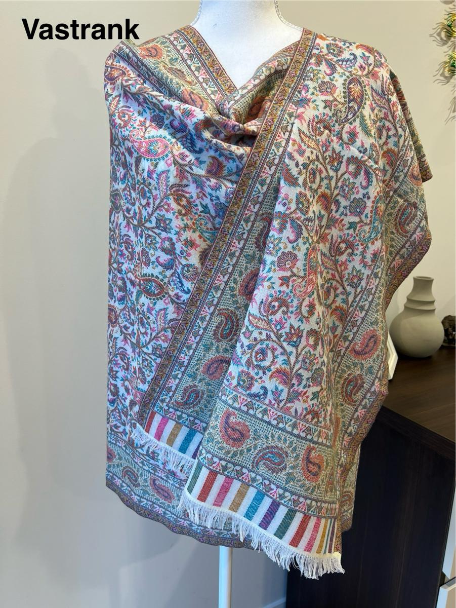 Perfect for winters to keep … View moreVastrank presents absolutely elegant & Authentic Kashmiri Jamawar Kani weave stole. This stole offers a true combination of fine artistry and multicoloured floral & paisley and geometric patterns maintaining the warmth, style & elegance. 🎉