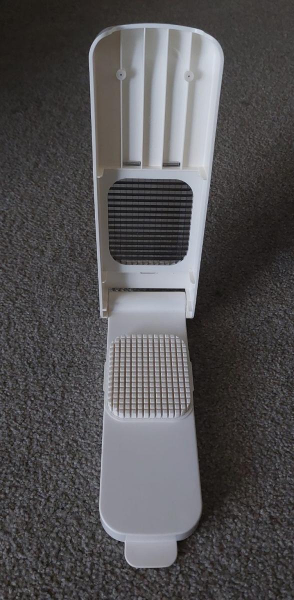 Fast-chops in seconds in one simple action Safe-no risk of cutting your finger during normal use Hygienic-dishwasher-safe and easy to clean The Alligator design-robust and ingenious The Alligator is designed with a lattice of 28 intersecting, extremely sharp stainless steel blades. Mounted in… View moreFast-chops in seconds in one simple action Safe-no risk of cutting your finger during normal use Hygienic-dishwasher-safe and easy to clean The Alligator design-robust and ingenious The Alligator is designed with a lattice of 28 intersecting, extremely sharp stainless steel blades. Mounted in a frame that forms the integral upper half of the cutter, the sharp edges move downwards in one simple pressing action. The blades never come into contact with the base plate or your fingers so the blades remain both sharp and safe to use.