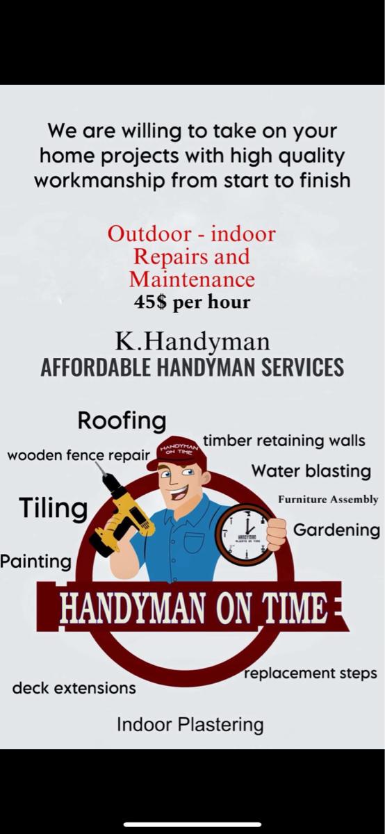If you looking for a handyman can do anything you need for home maintenance, fast service, competitive rates,don’t hesitate to contact us via this number 0277111311