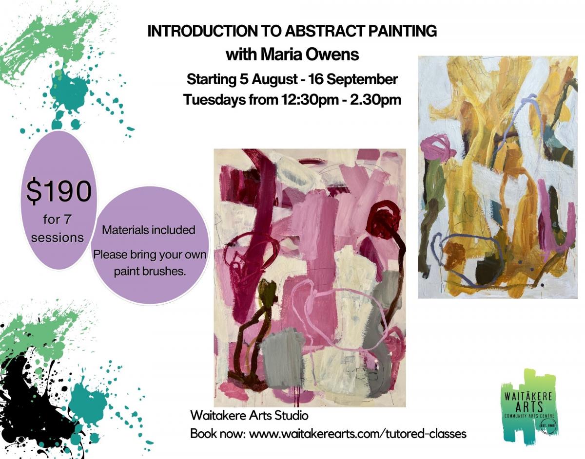 Join the talented Maria Owens as she starts another round of 'Introduction to Abstract Painting' at Waitakere Arts in August 🎨🎨