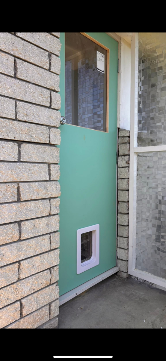 We removed the old doors and installed brand new ones, giving the home a fresh, clean look. One of the new doors was customized to include a dog door, allowing her pet to move freely and safely between inside and outside.