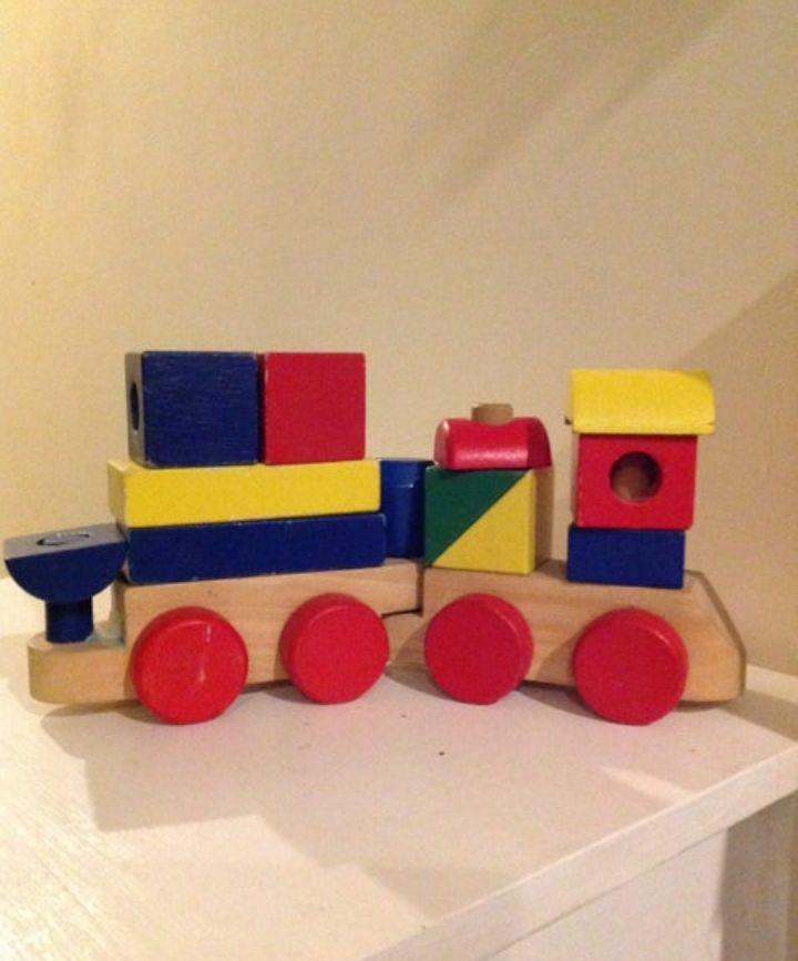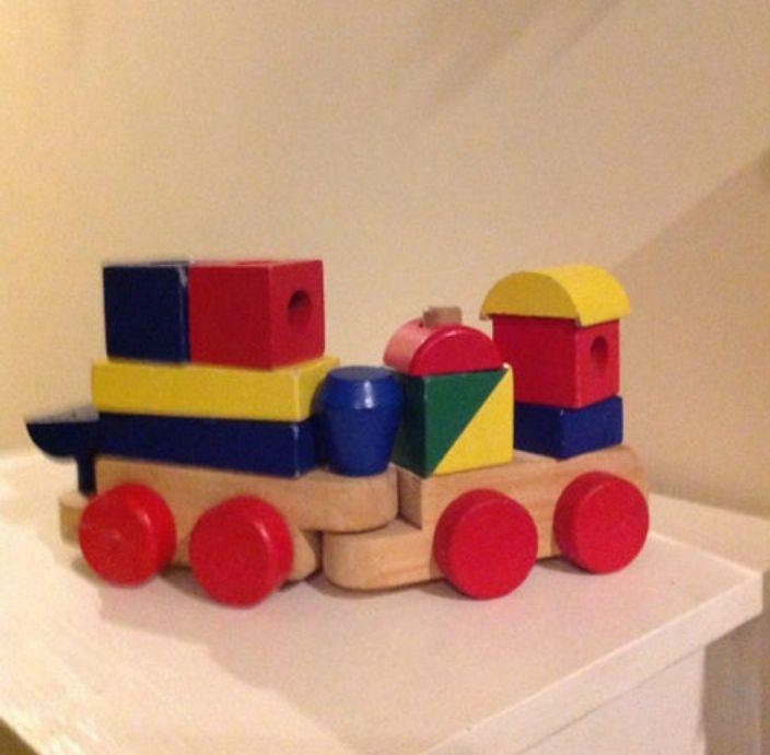 This children's Wooden Train will keep any child busy with its detachable train carraiges and its many colourful wooden blocks to stack on top. Good condition.