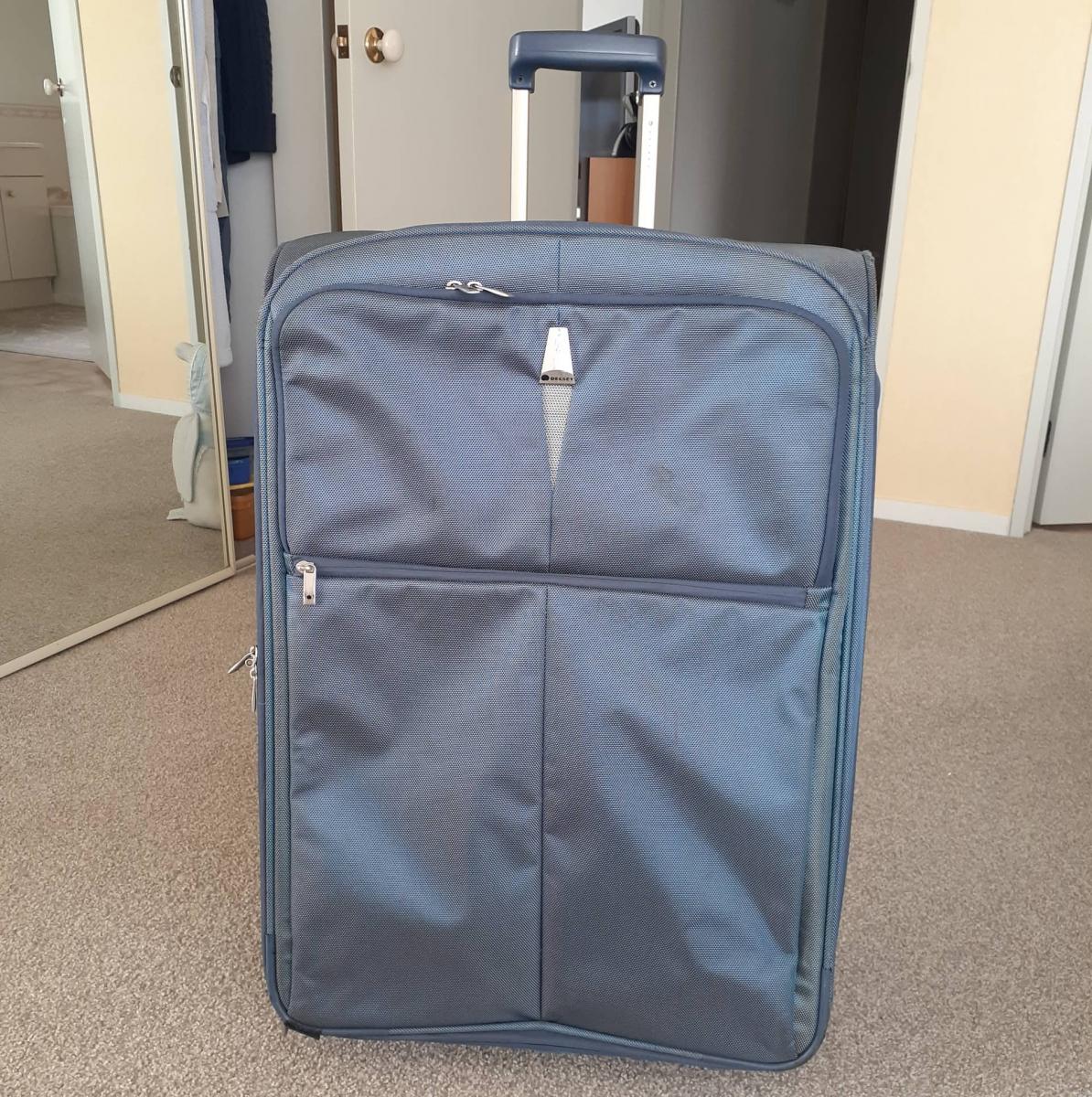 Very lightweight large blue Delsey suitcase in excellent condition.