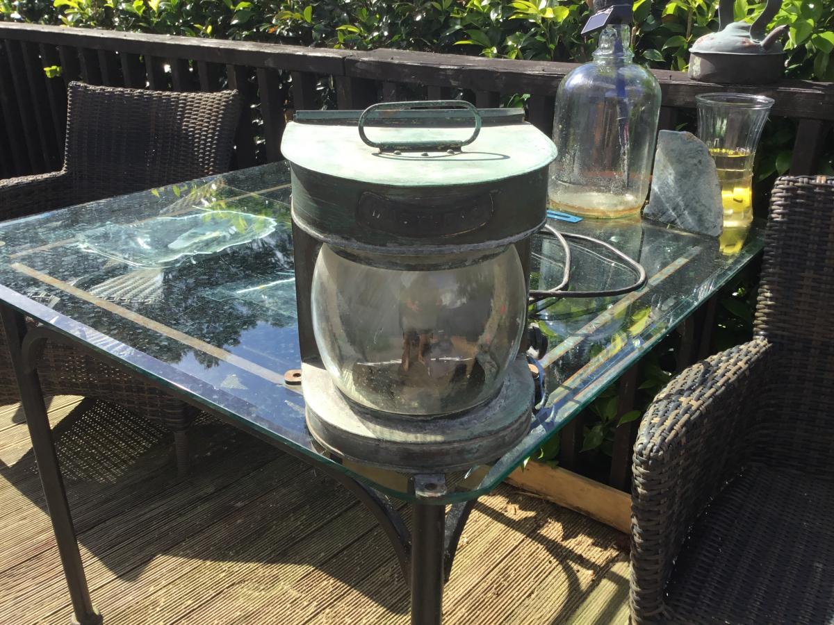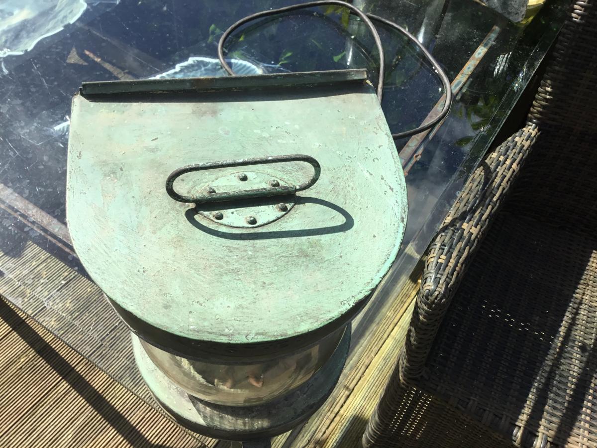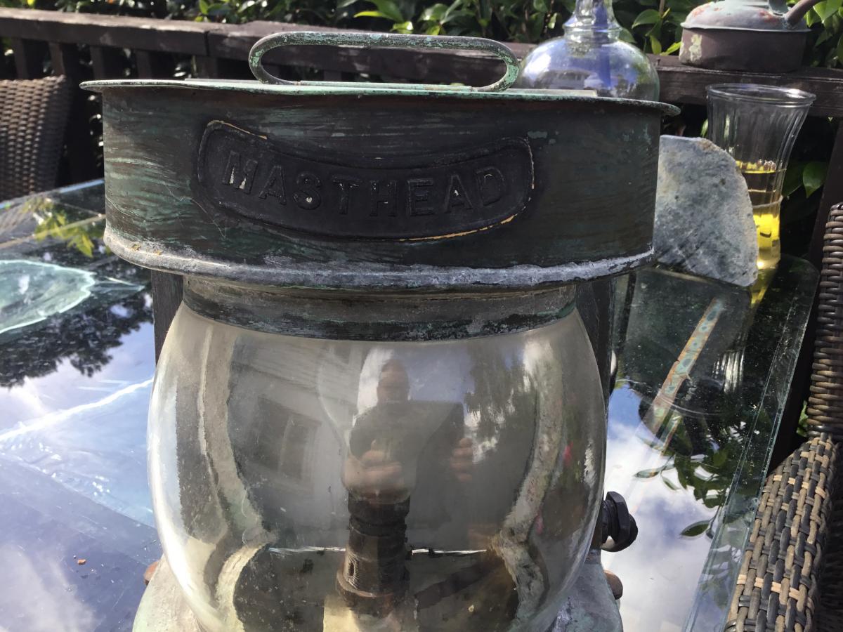 Old ships lamp in good condition the glass globe is perfect not cracked it is a Masthead.
