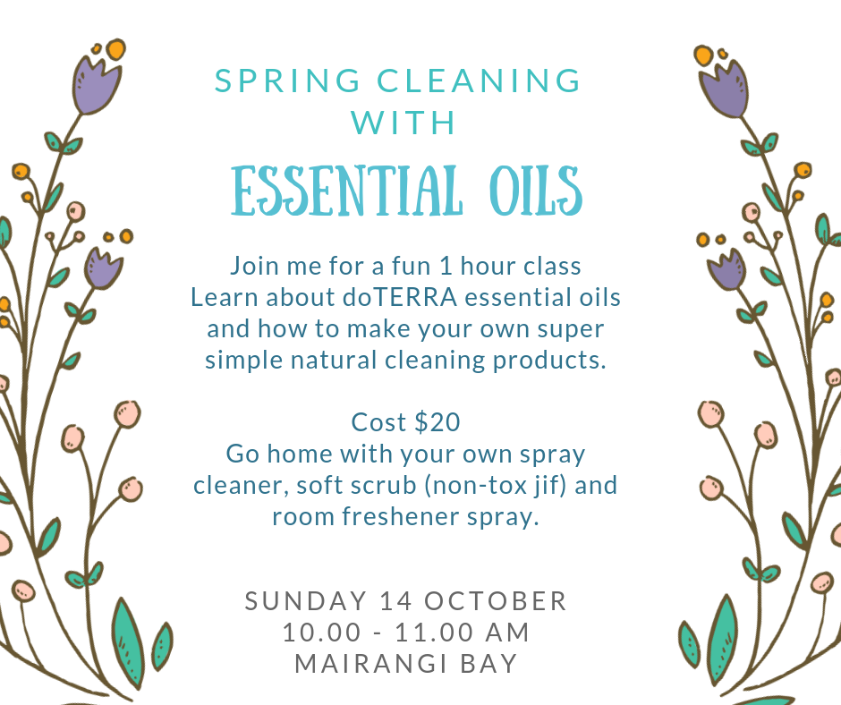 You will make and take home with you your own spray cleaner, soft scrub (non-tox jif) and personalised room freshener spray.
