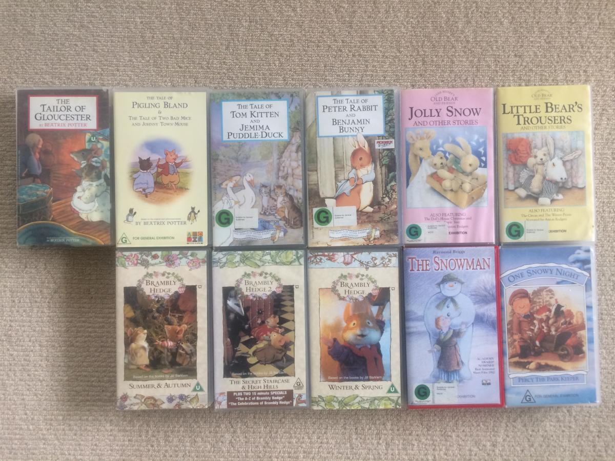 If you still have a working VCR you are welcome to these much loved children's classics on VHS.