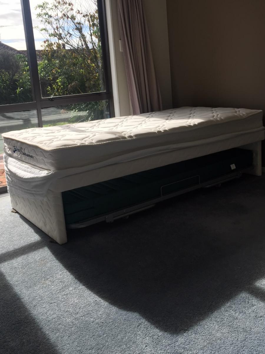 Serene Sleep - Bahamas king single bed and trundler are 4 years old. The trundler mattress is foam. Valence is included.