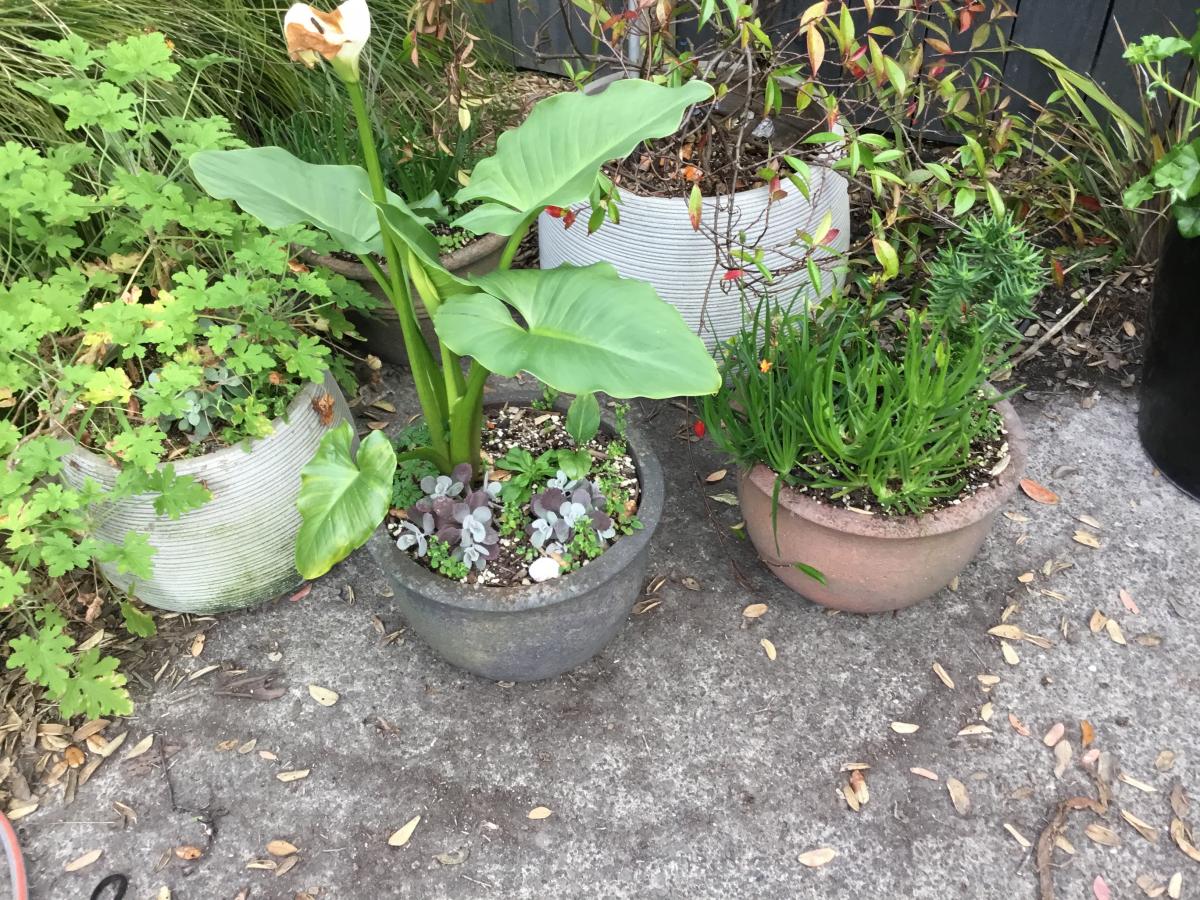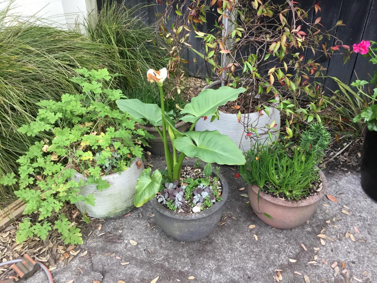 Selection of plants in pots. All are growing very well 20.00 each for small pots $40.00 for the big one with jasmine in. Pick up Browns Bay.