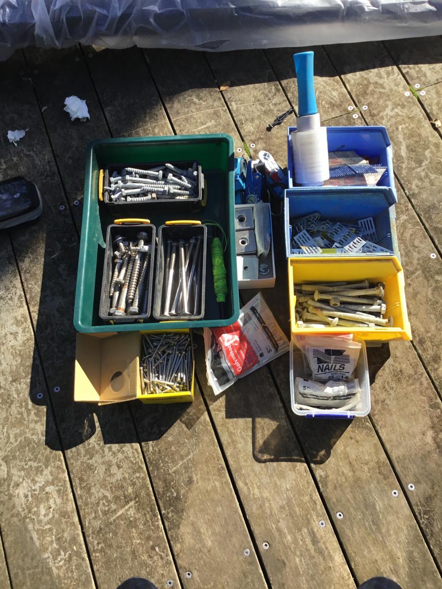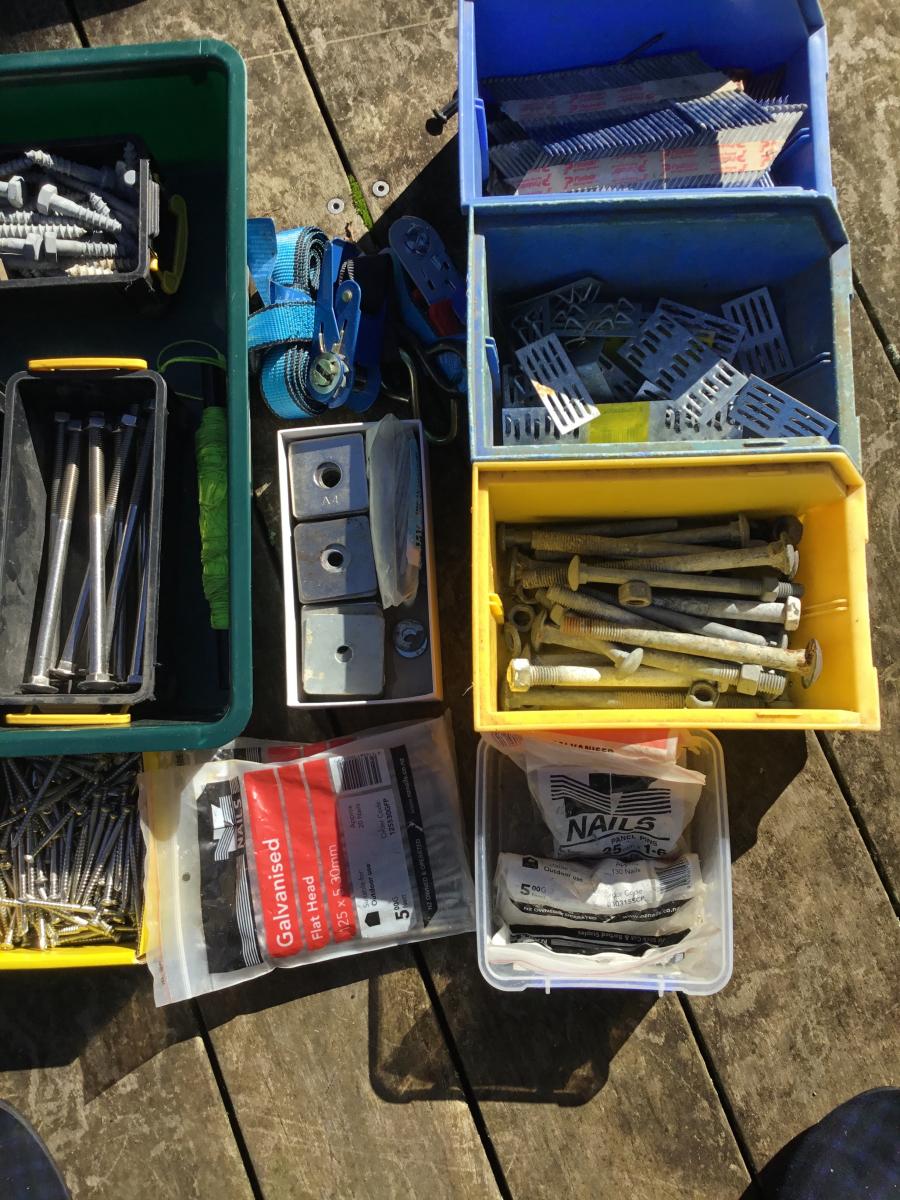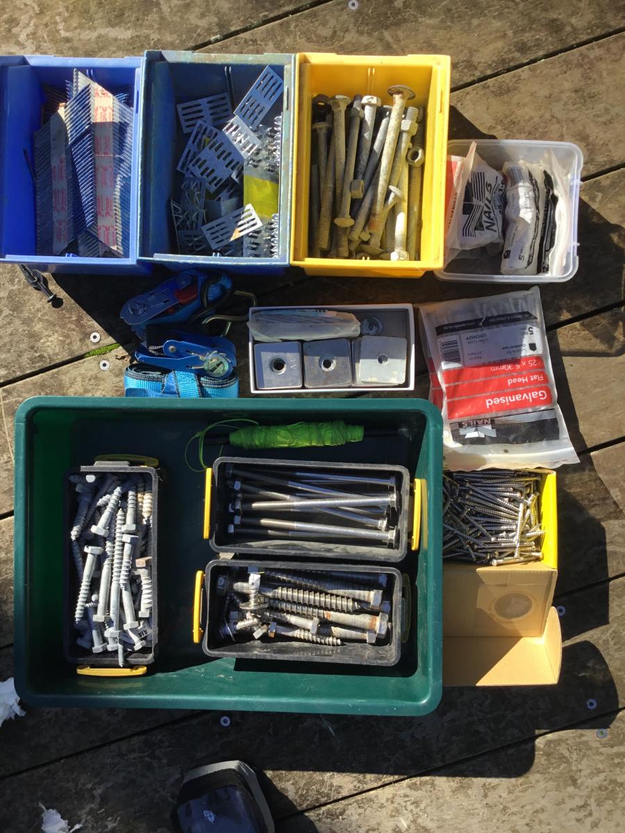Selection of fixings, coach bolts coach screws 3 mm square washers a mix of s/ steel and galv.