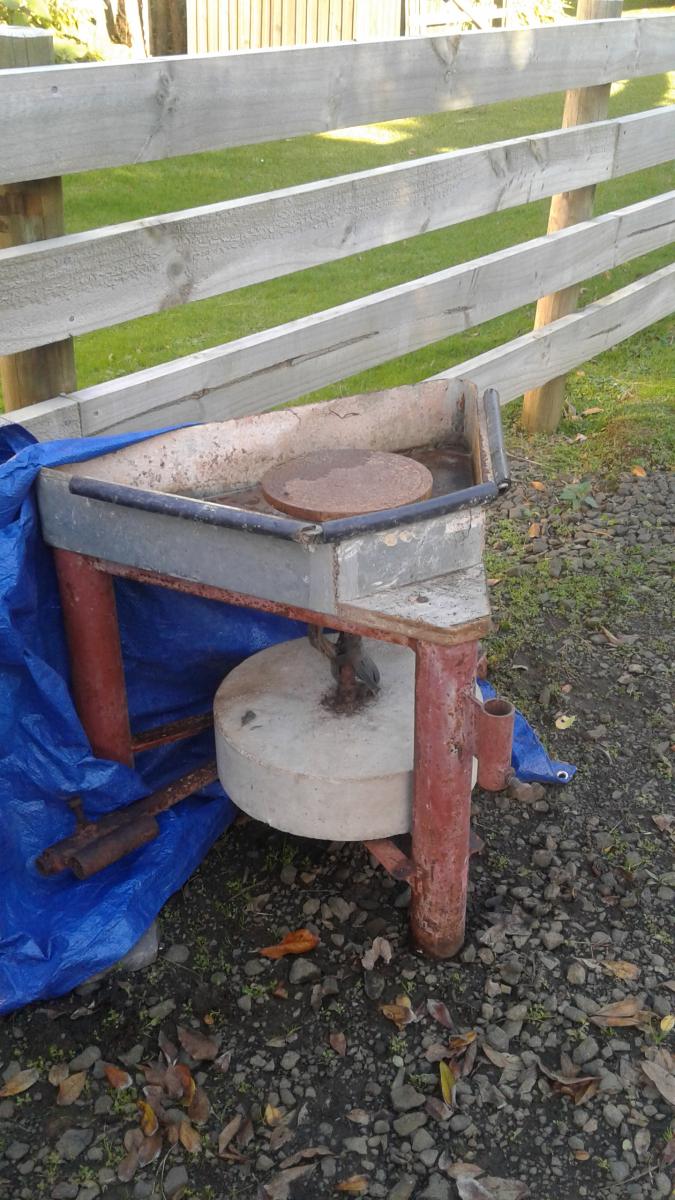 Potters wheel uncovered in a barn on our property along with equipment. Oxides as well as pottery equipment in photos.