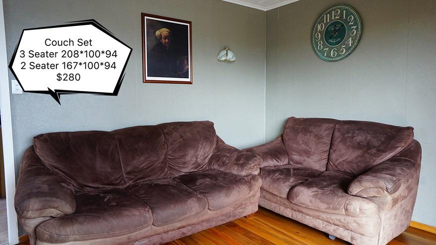 I have these coffee colored fabric couch set that I would now like to give for free. Has to be picked up ASAP. Please give me a call on 02102468787.