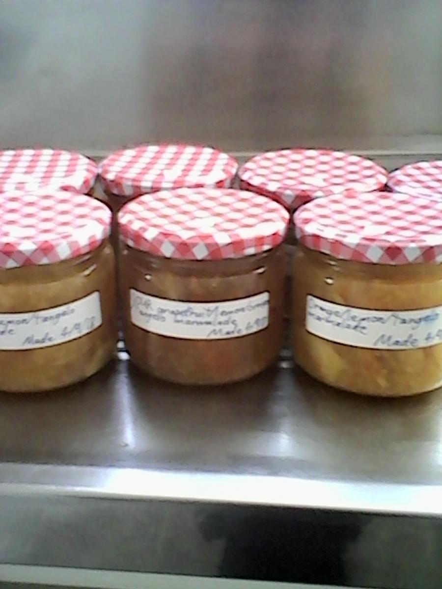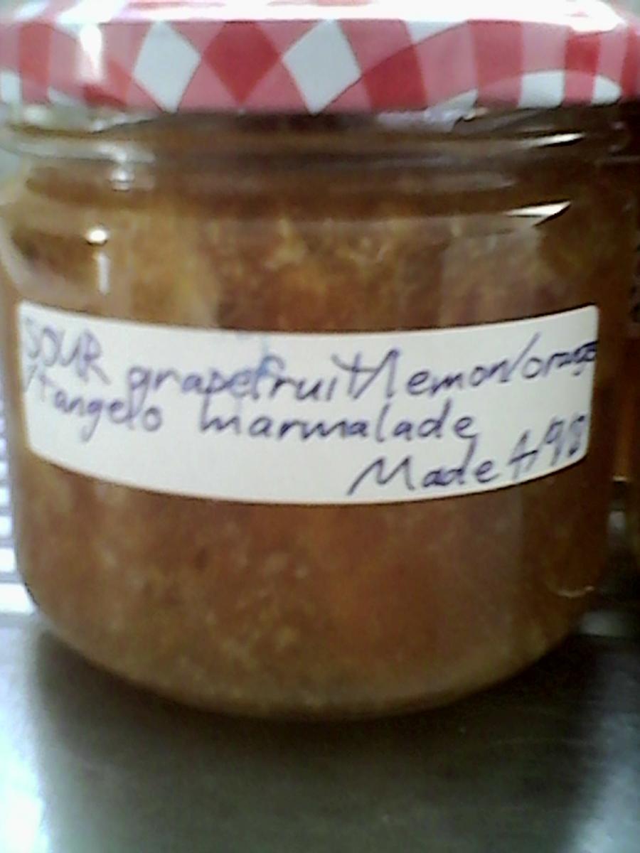 Some with grapefruit, some not - all sorts of citrus fruit - some sweet, some sour, some a mixture of these - just ask!!!!!!!! =D I have several jars at $3 for 300mL or $4 a pasta sauce-sized jar. =D