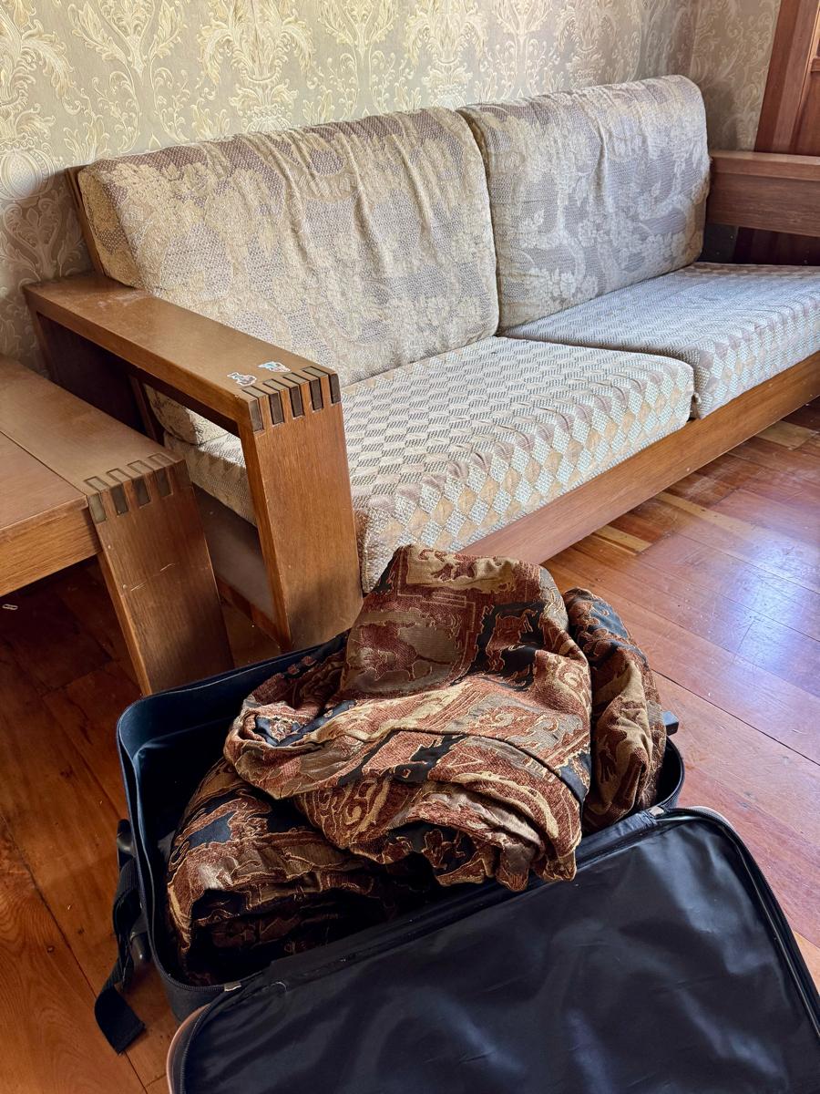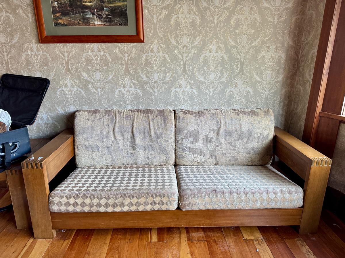- Fold down double rocker bed inside. Foam replaced with Elephant foam and covered in mustard suede with cream piping.