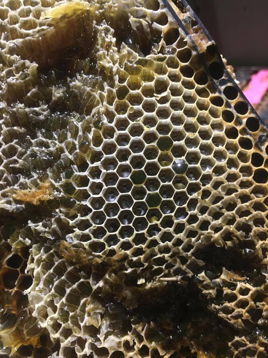 Kanuka honey has a green tint to it when seen in the honey frame (see picture!), but this disappears when the honey is extracted and potted.