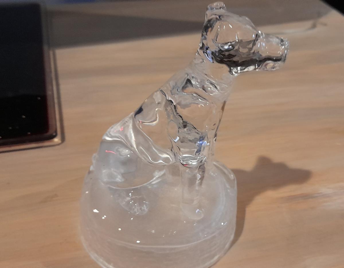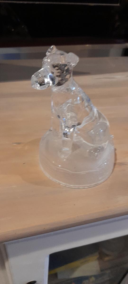 lovely glass dog on a stand 14cm tall nice condition