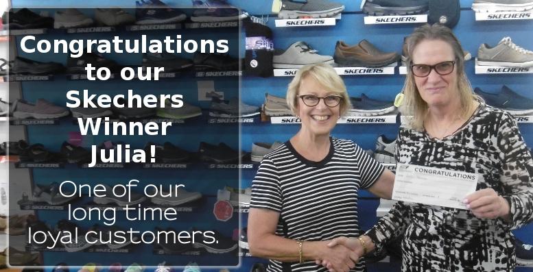 Julia has been a long time loyal customer. She won another pair of Skechers. Well done Julia!