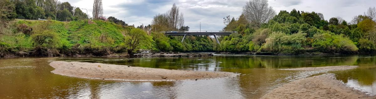 Very low this morning. Below Dominion Avenue with Fergusson Bridge (or the Low-level bridge) beyond. Looking east.