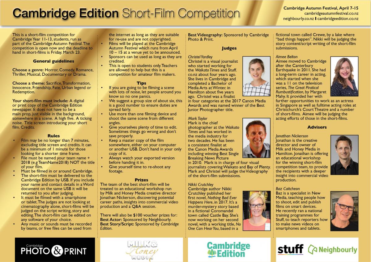 *Three other … View moreHey neighbours, here's an info sheet (PDF and Jpeg) on our inaugural short-film competition, for senior secondary school students, to be run as part of the Cambridge Autumn Festival.