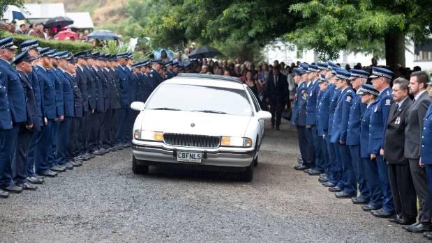 Police form a guard of honour as Sergeant Gordon Grantham leaves Cambridge for the final time.