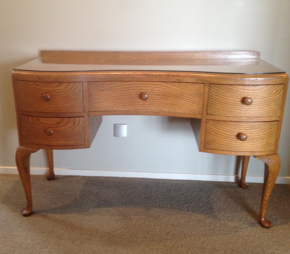 Antique oak dresser/dressing table with queen anne legs and tempered glass top, 5 x dove tail drawers - all smooth running, very good condition, it also has 3 bevel edged pivoting mirrors in good condition that are currently detached as it was being used as a hall dresser. Purchased from an … View moreAntique oak dresser/dressing table with queen anne legs and tempered glass top, 5 x dove tail drawers - all smooth running, very good condition, it also has 3 bevel edged pivoting mirrors in good condition that are currently detached as it was being used as a hall dresser. Purchased from an Antique shop in Te Aroha 15 years ago. Pick up Te Miro, Cambridge.