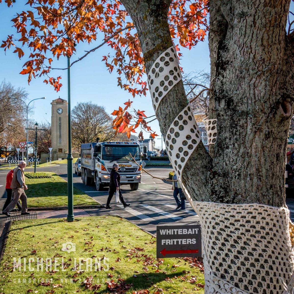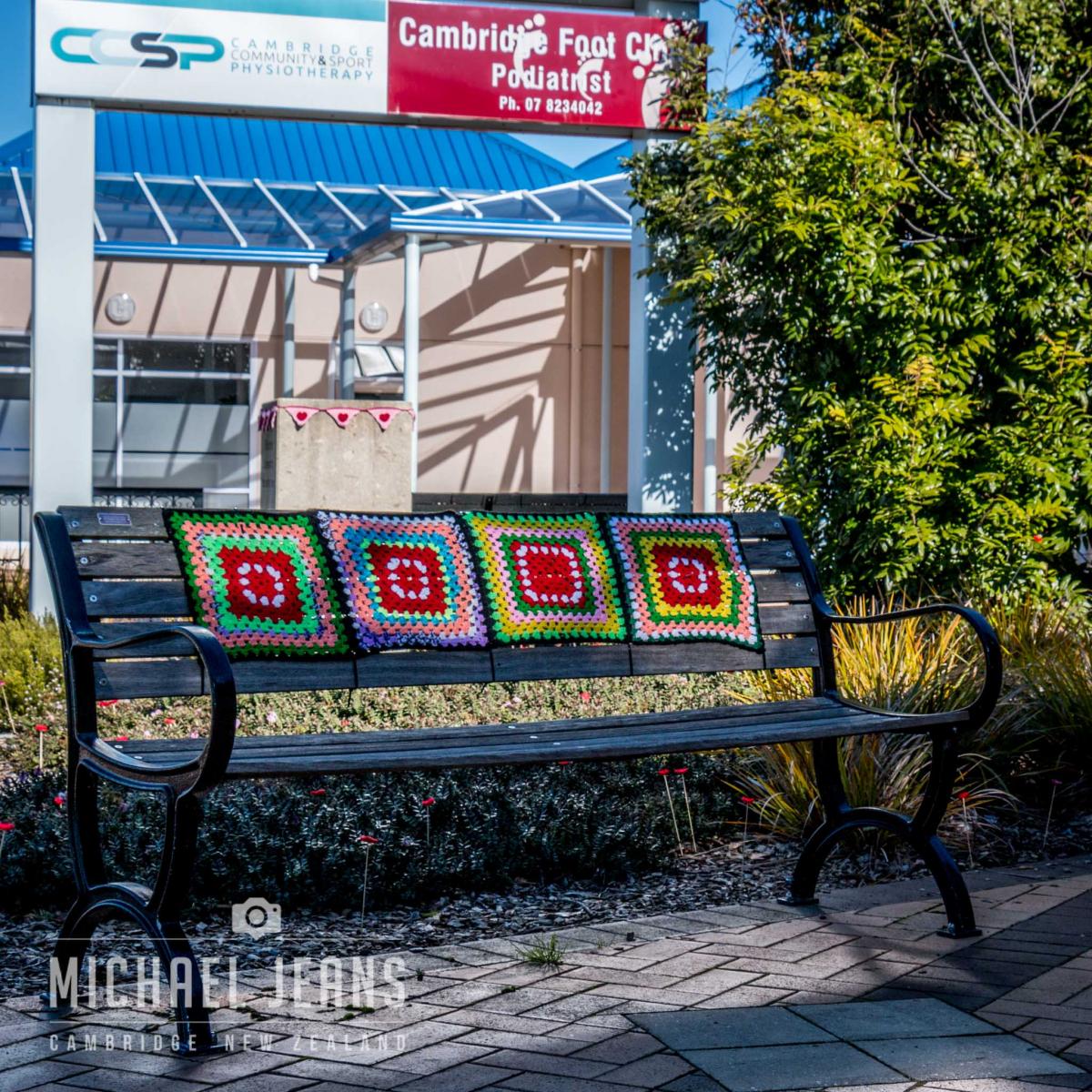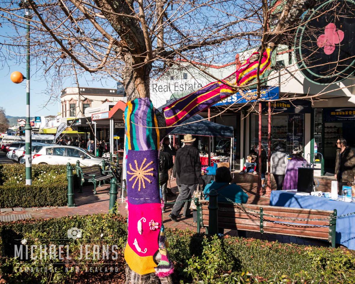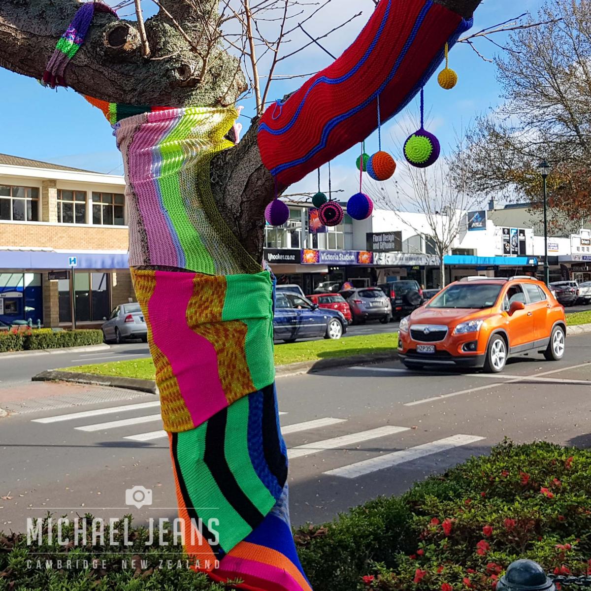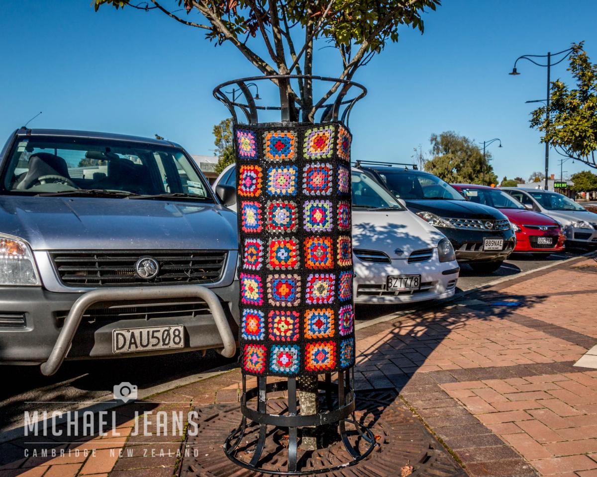 Enjoying Cambridge Creative Fibre's yarn bombing in Cambridge CBD & uptown Leamington ahead of Cambridge Creative Fibre Annual Exhibition Tuesday 20 June 2017 to Saturday 24 June 2017 at Raleigh Street Christian Centre 26/24 Raleigh Street Leamington New Zealand