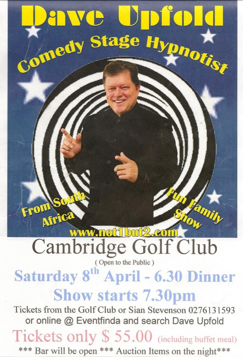 Final few hours to get your tickets for Comedy Hypnotist Show and meal at the golf club - tomorrow Saturday 8th April 6:30pm.