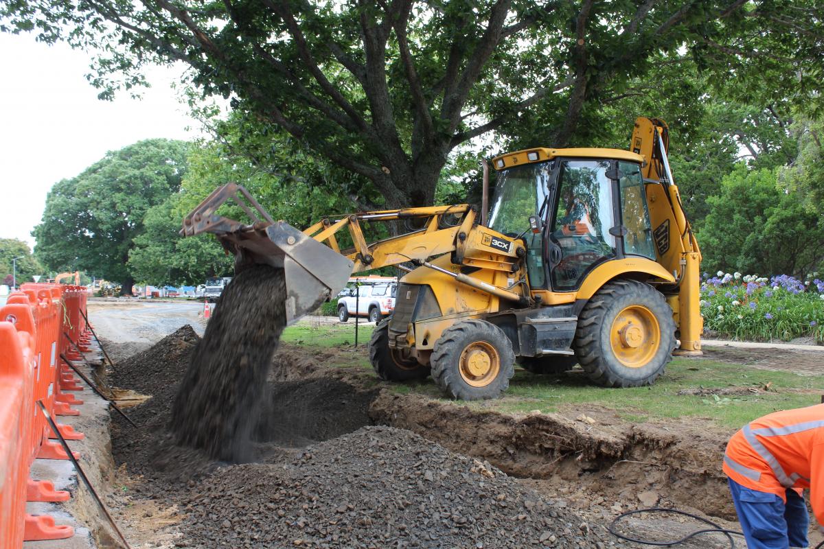 The next big tick off the list at the Cambridge roundabout project is to dig out Victoria Street from Clare Street to Hamilton Road.