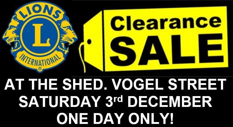 It's about to happen, our huge Lions Clearance Sale. Rock on down to "The Shed" next Saturday at 9,00am. Follow the Lions Signs and head down behind the Kindergarten.