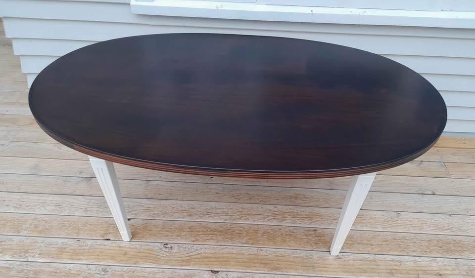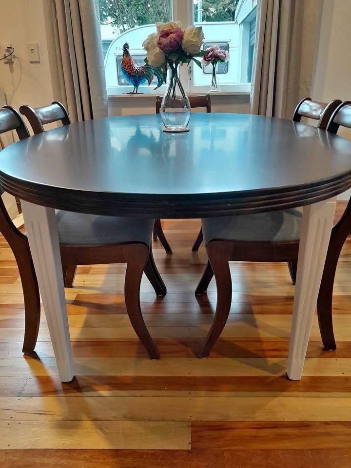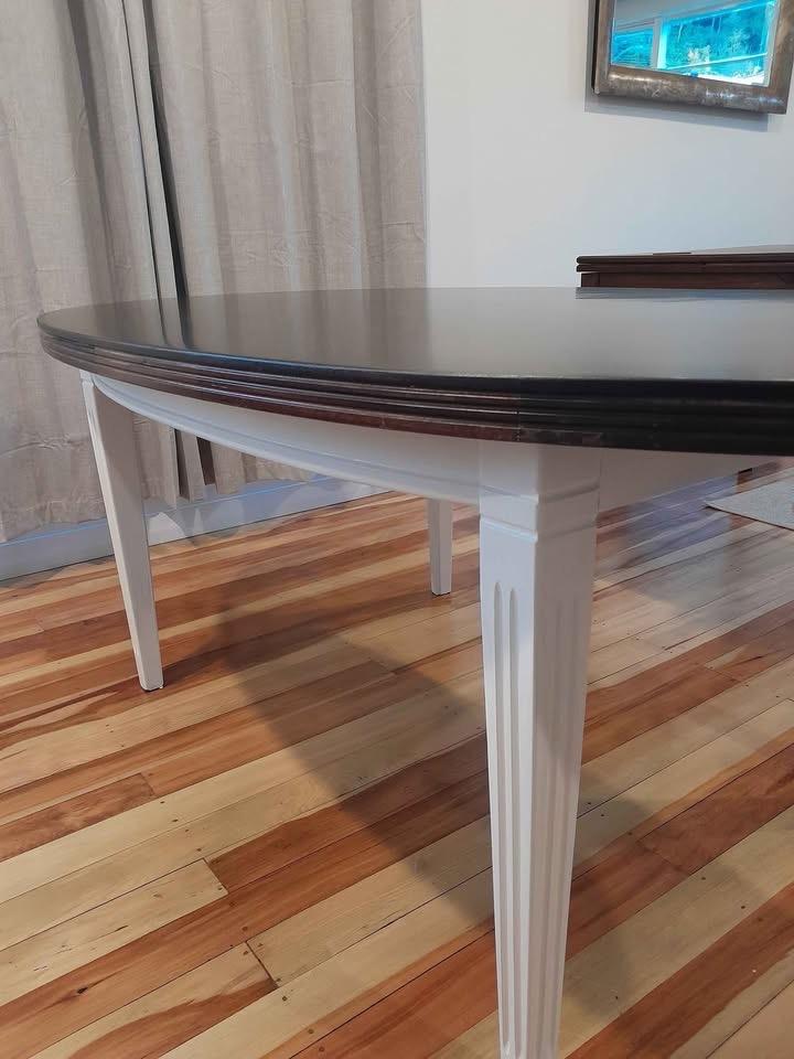 Table seats 6, also recently refurbished, does have minor imperfections.