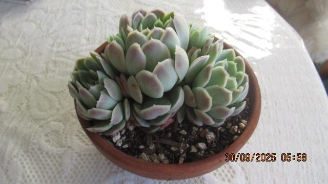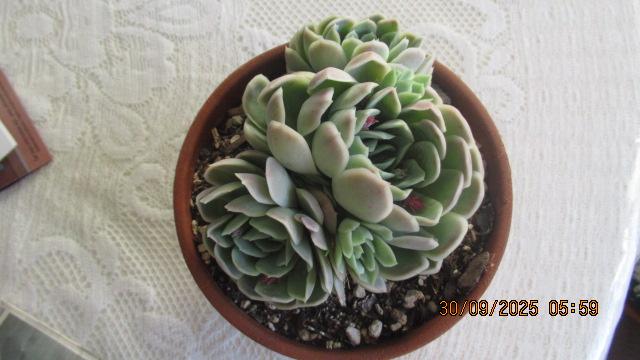 Succulent in pottery container. This plant will throw up flower stalks near the end of the Summer.