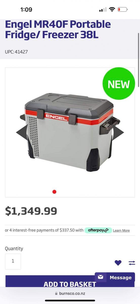 38L Engel fridge set up for camping/fishing etc 12/24/240v, comes with everything you need ready to go .Battery/w box and solar panel and solar charge regulator.Everything in great condition only 12 months old and used 3-4 times.Selling on behalf of a friend that has had some unforseen expenses … View more38L Engel fridge set up for camping/fishing etc 12/24/240v, comes with everything you need ready to go .Battery/w box and solar panel and solar charge regulator.Everything in great condition only 12 months old and used 3-4 times.Selling on behalf of a friend that has had some unforseen expenses show up .Pickup either in lower hutt or carterton $1400 for the lot or $1000 for the fridge alone.Still under warranty.Pm me to discuss,cheers.