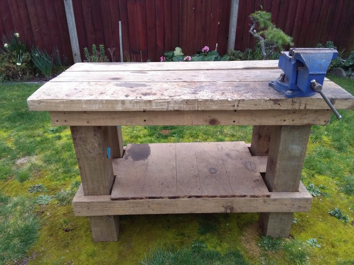 Very solid wooden work bench for sale. Vice not included, but will sell for $120 (vice only)