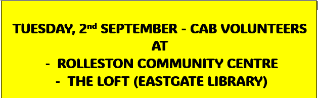CAB VOLUNTEERS AT ROLLESTON COMMUNITY CENTRE AND EASTGATE LIBRARY – Tuesday, 2nd September