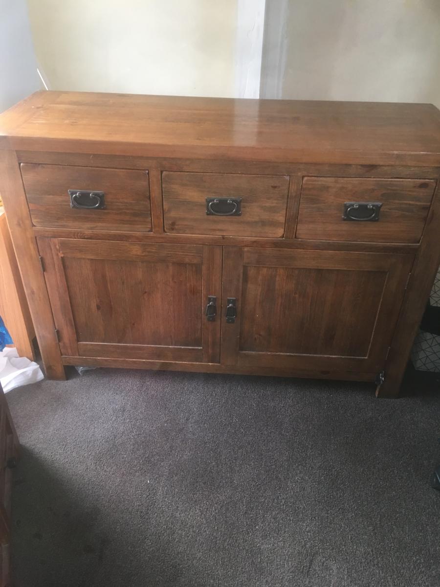 Pine 2 cupboard 3 draw cabinet. Good condition.