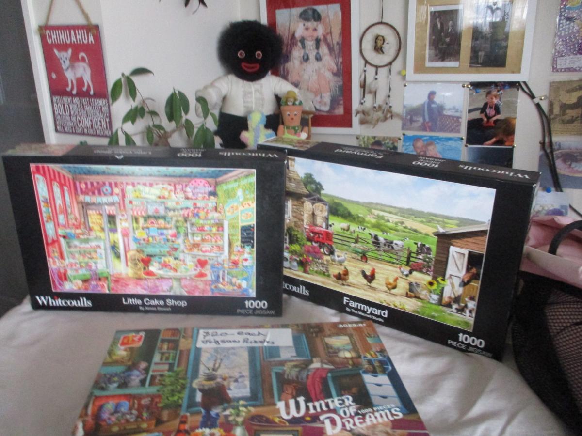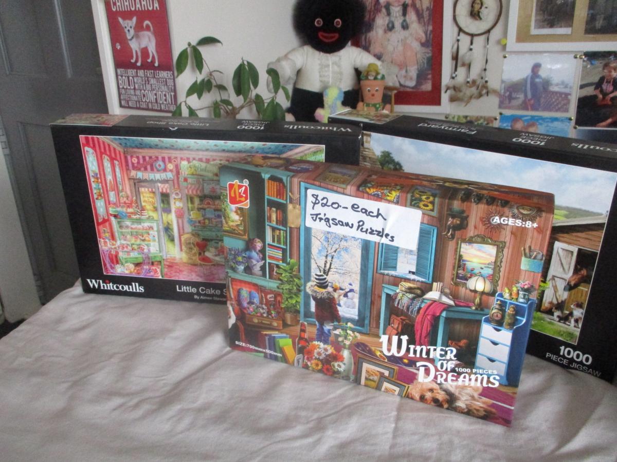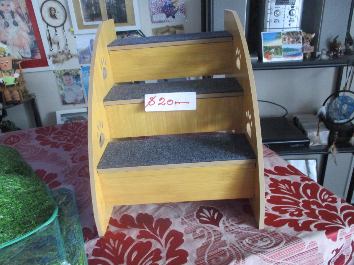 I have for sale a::: Dog car seat, & other things for dogs, & 3 Jigsaws Puzzles. The Price,s are in or on my listing. The steps are small ones, & the 2 wee or poo mats never been used
