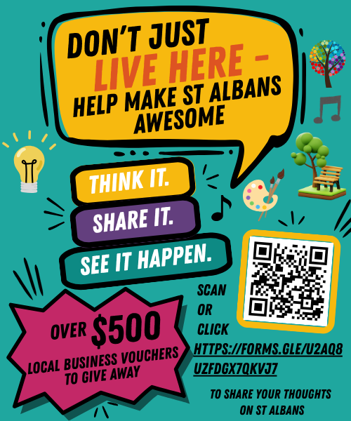 Input your ideas into the St Albans Strategy 2026-2035 and be in to win vouchers from local businesses including 2 $100 Fresh Choice Edgeware vouchers and $50 Hells Pizza Shirley vouchers.