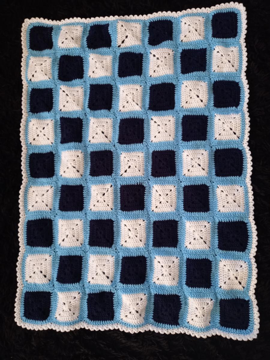 Blanket measures approx 63cm x 83cm. Hand made crochet in a pet free and smoke free home. Collect from Hei Hei. [Listed elsewhere]