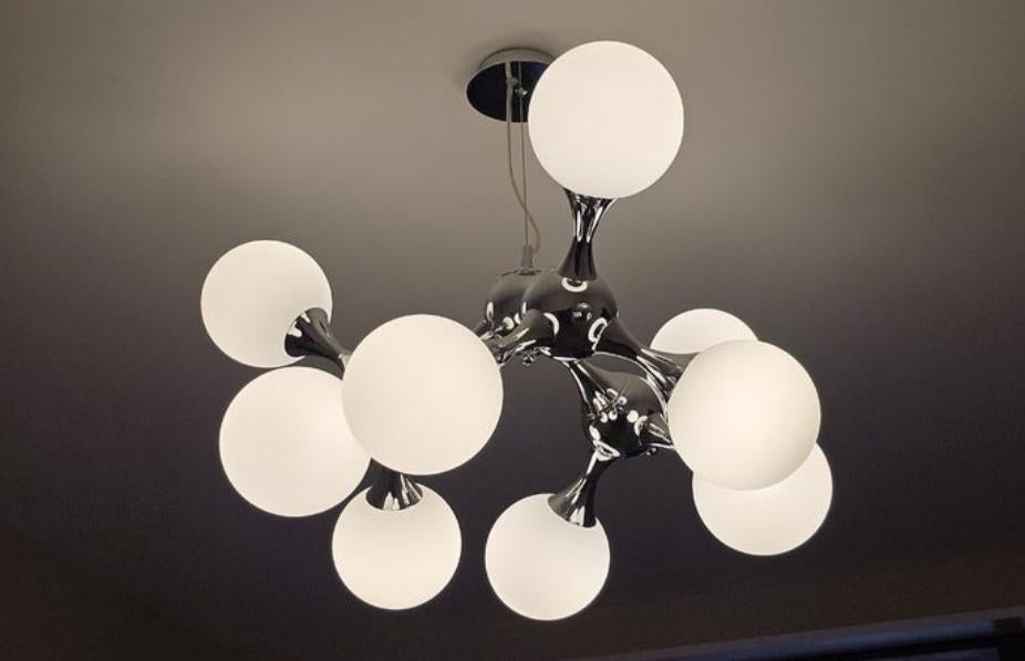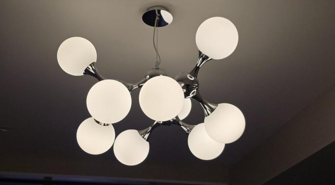 Awesome modern pendant. White and silver. Updating entranceway colours so selling this, vg condition and spare glass light covers included.