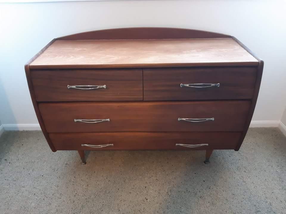 Stripped back to original wood and oil stained to protect surface. Beautiful set of drawers.