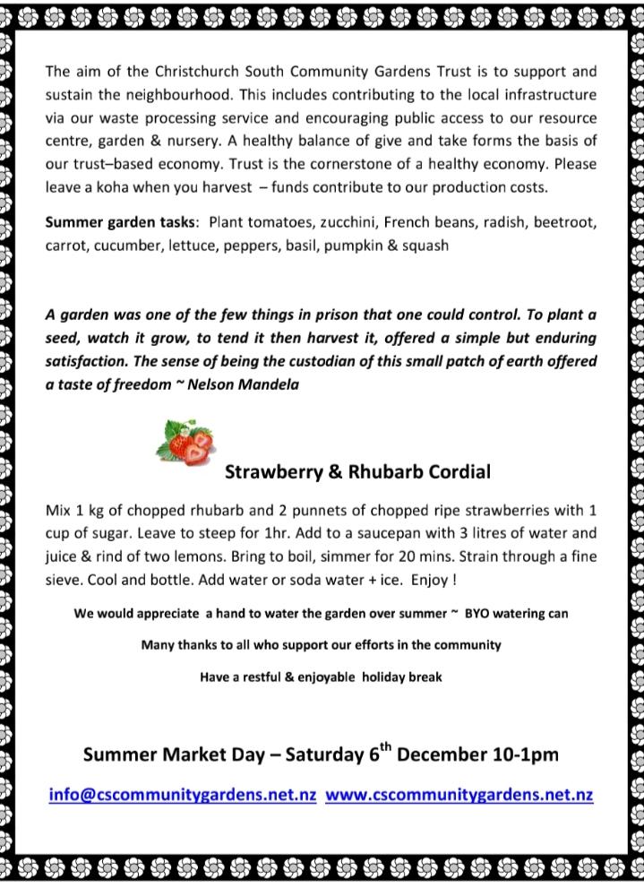 Christchurch South Community Gardens summer market day, tomorrow December 6th at 188 Strickland Street ๐