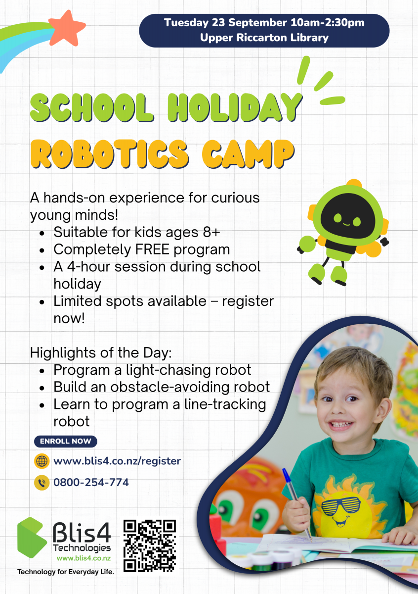 #RoboticsWorkshop #FreeEvent #SchoolHolidayActivities #ChristchurchKids #STEMforKids #Blis4Technologies #FutureEngineers #UpperRiccartonLibrary #Robotics #BLIS4 #SchoolHoliday #STEAM